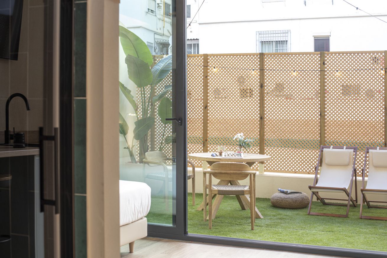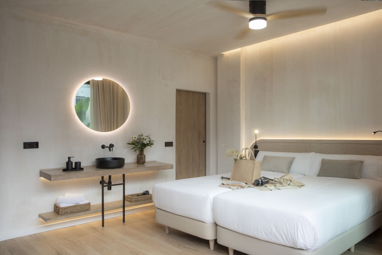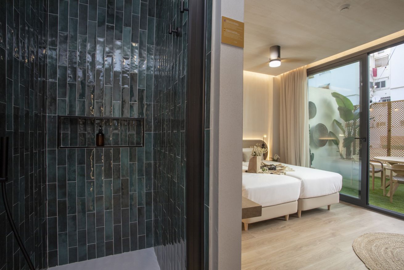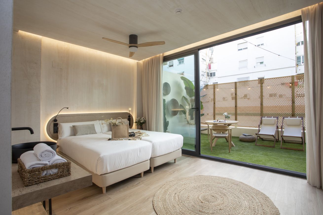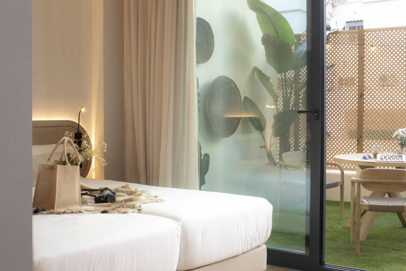 Descubre un espacio de diseño exclusivo y confort en este alojamiento boutique. La habitación doble, con dos cómodas camas de 90 x 200 cm, ofrece un descanso sin igual en un entorno exclusivo. Disfruta de tu propia terraza privada, un rincón lleno de luz natural ideal para trabajar, relajarte o desconectar de una jornada de turismo.