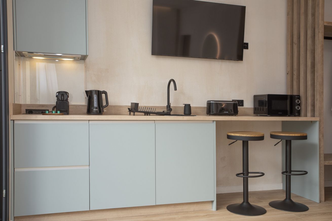 Cuenta con microondas, tostador, kettle y cafetera de cápsulas para tu comodidad, y el baño privado incluye una práctica ducha. Además, la habitación dispone de internet de alta velocidad, televisión y aire acondicionado, asegurando que tu estancia sea tanto cómoda como agradable. Cada rincón de esta habitación está diseñado para brindarte una experiencia acogedora y auténtica en el corazón de la ciudad.