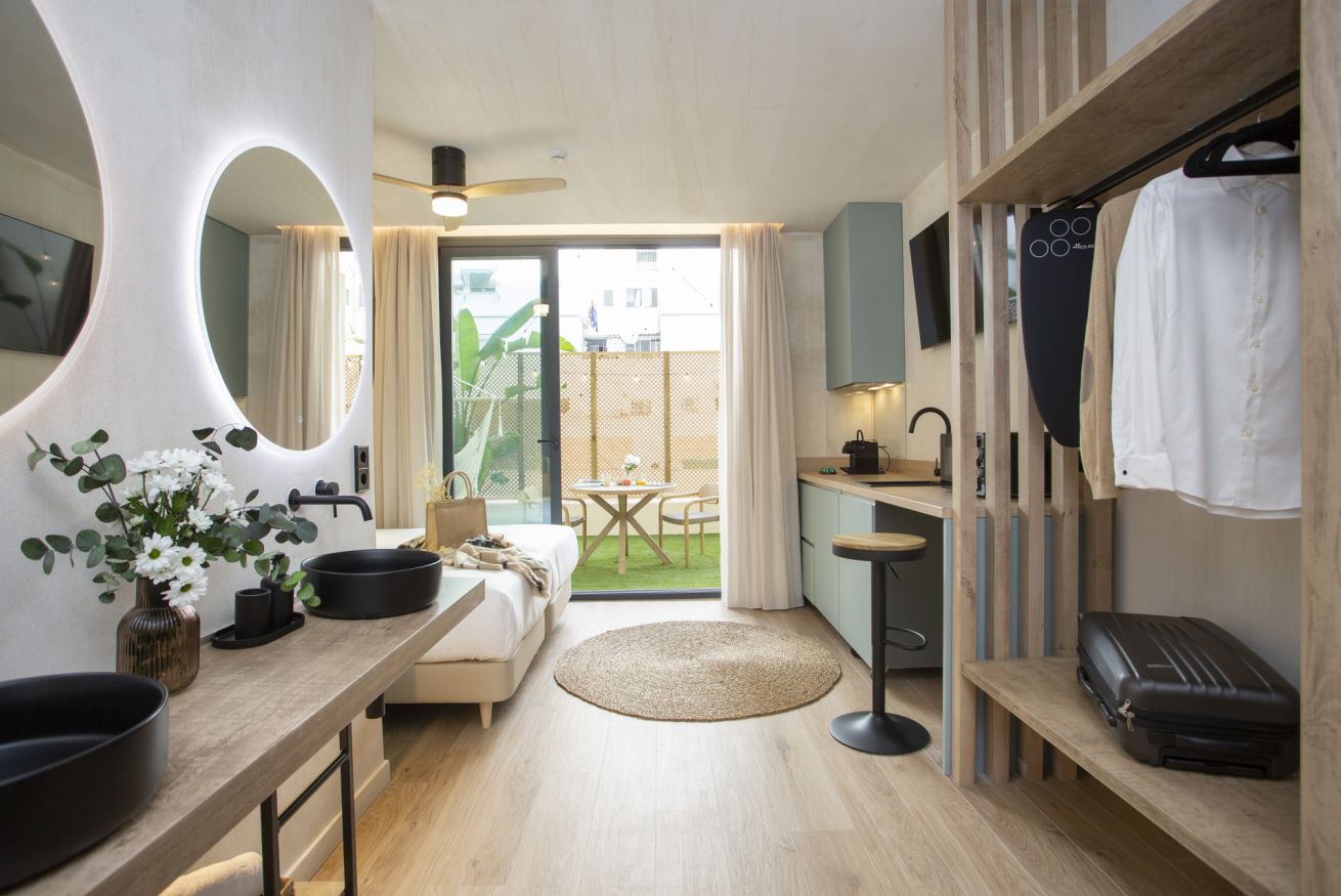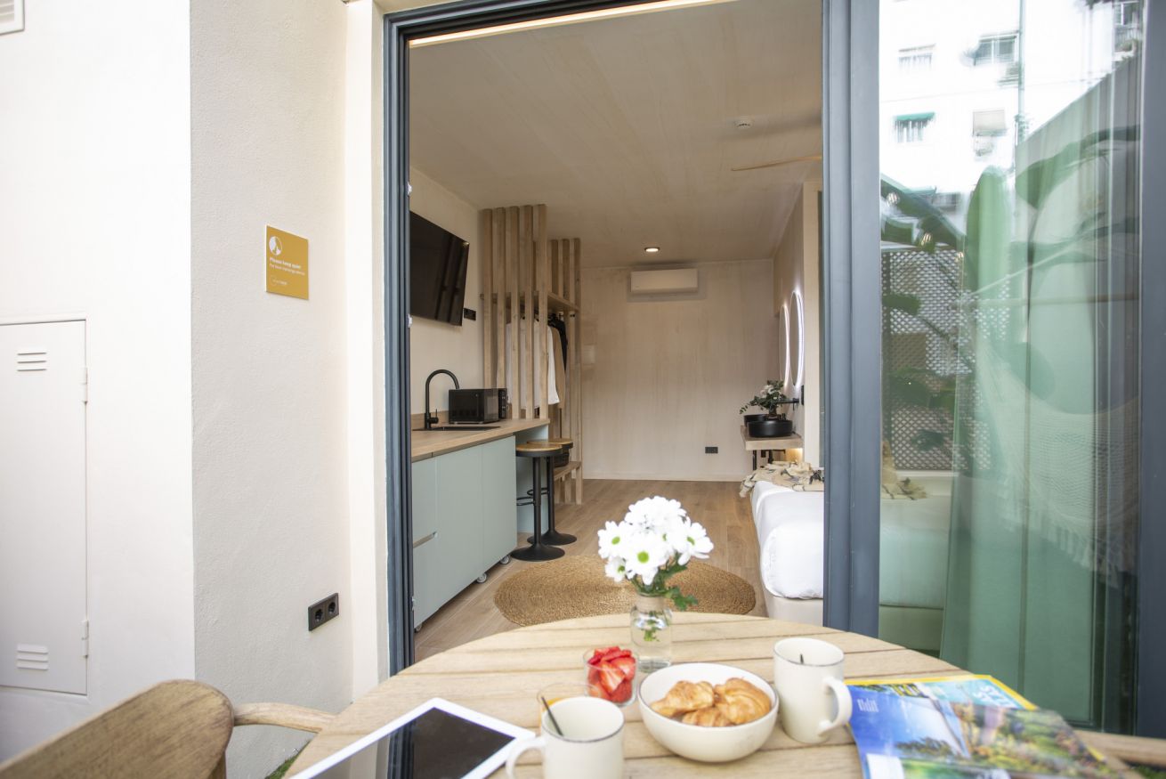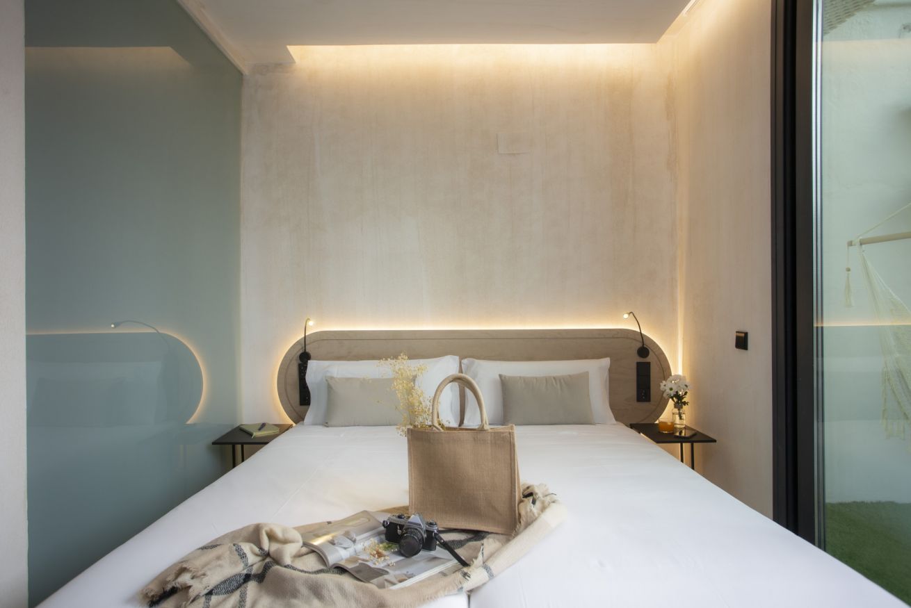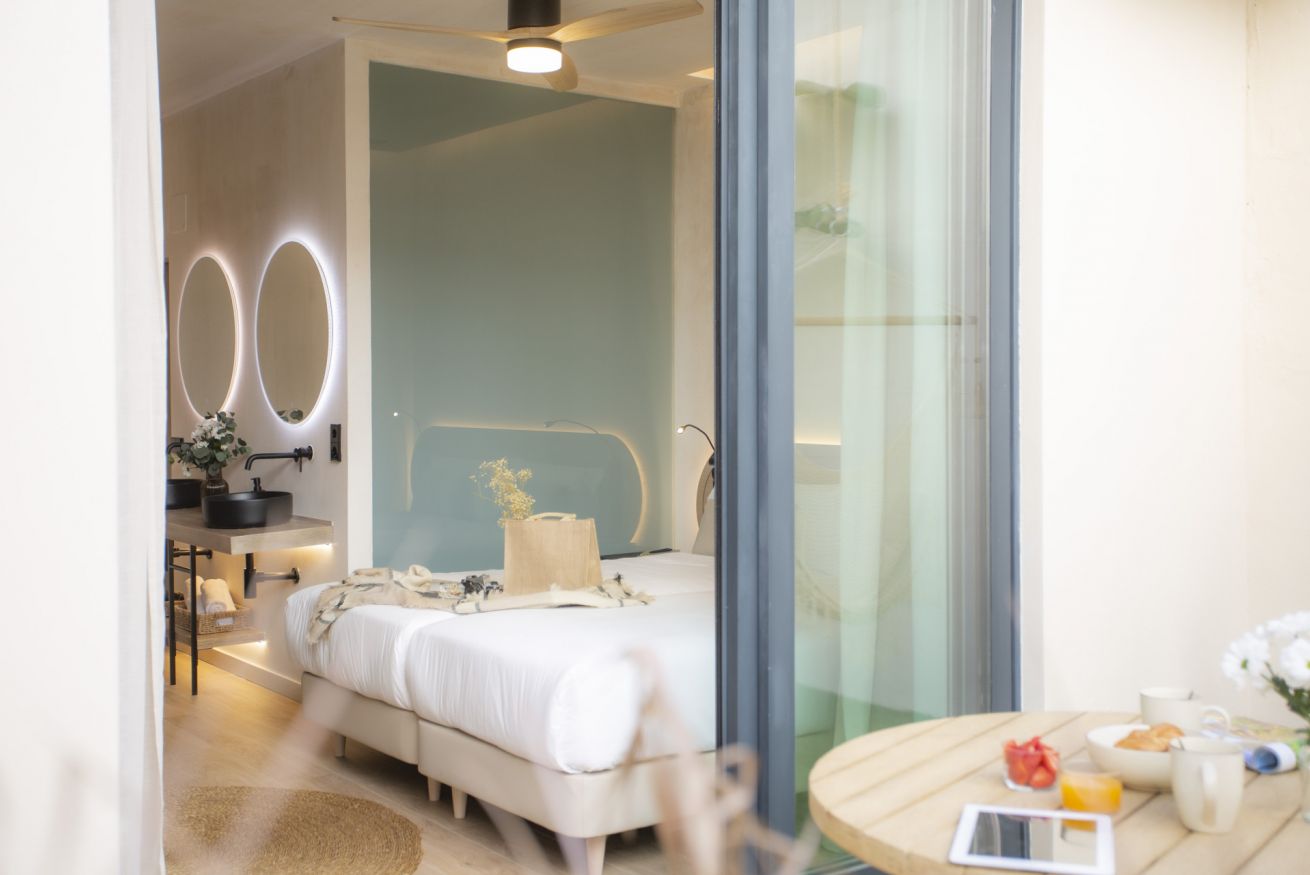 Descubre un espacio de diseño exclusivo y confort en este alojamiento boutique. La habitación doble, con dos cómodas camas de 90 x 200 cm, ofrece un descanso sin igual en un entorno exclusivo. Disfruta de tu propia terraza privada, un rincón lleno de luz natural ideal para trabajar, relajarte o desconectar de una jornada de turismo.