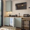 Cuenta con microondas, tostador, kettle y cafetera de cápsulas para tu comodidad, y el baño privado incluye una práctica ducha. Además, la habitación dispone de internet de alta velocidad, televisión y aire acondicionado, asegurando que tu estancia sea tanto cómoda como agradable. Cada rincón de esta habitación está diseñado para brindarte una experiencia acogedora y auténtica en el corazón de la ciudad.